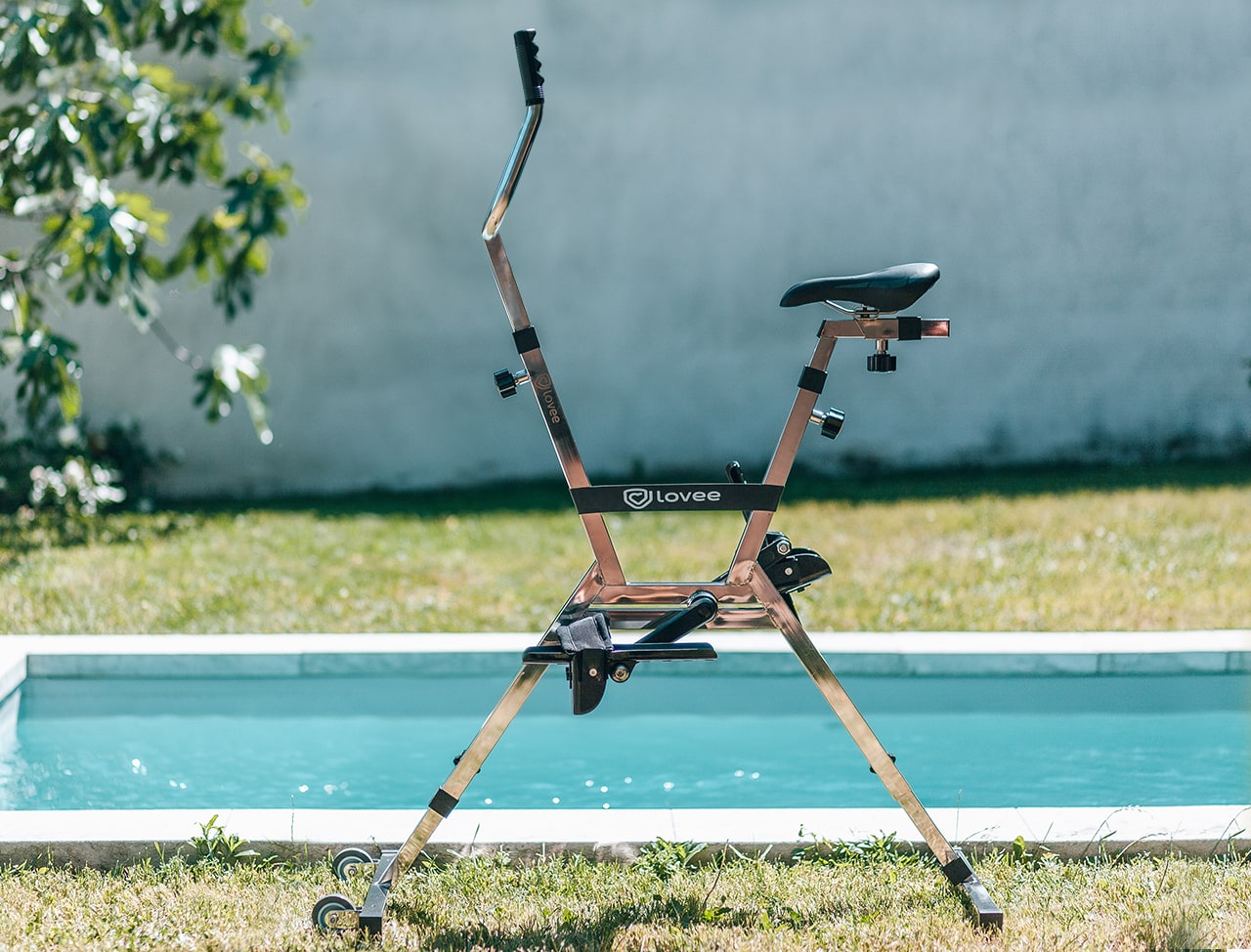 - Lichte aquabike (12 kg), gemakkelijk te verplaatsen dankzij de zachte, afneembare draagriem